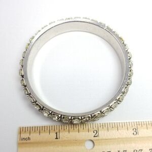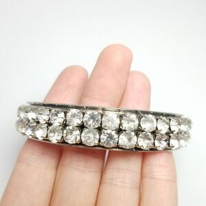 Vintage Rhinestone Bangle Bracelet, Two Row Silver Tone Stacking Estate