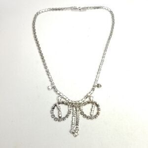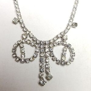 Vintage Rhinestone Bow Shape Center Collar Necklace, Retro Silver Tone Sparkle