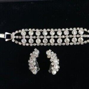 Vintage Rhinestone Bracelet and Clip On Earring Set