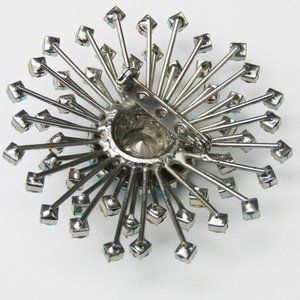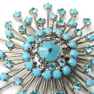 Vintage Rhinestone Brooch Blue Turquoise Starburst Retro Mid-Century Atomic