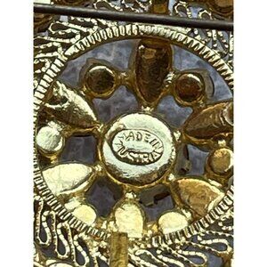 Vintage Rhinestone Brooch Made In Austria Fuchsia Pink Domed Gold-Tone