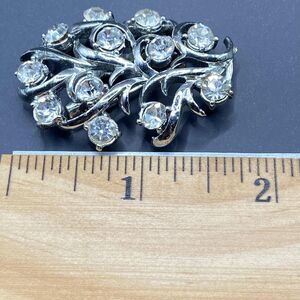 Vintage Rhinestone Brooch Silver Tone Floral Cluster Pin Costume Jewelry 1.75