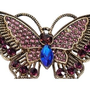 Vintage Rhinestone Butterfly Brooch Pin Gold Tone Pink Blue Purple Sparkle...