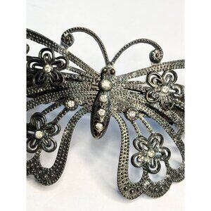 Vintage Rhinestone Butterfly Hair Clip Barrette Metal Floral Design 4.25" Wide E