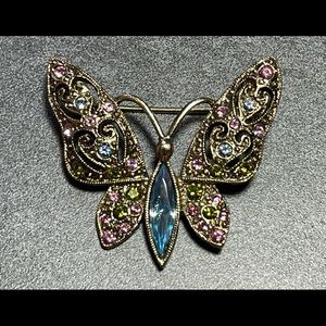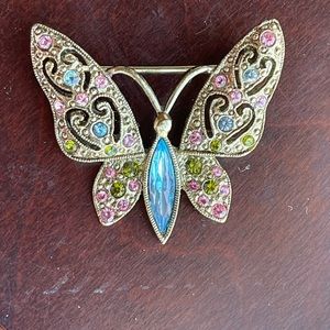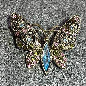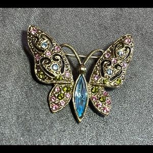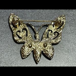 adorn this gold tone butterfly. Gold looks bright & without tarnish or dings. No hallmarks.