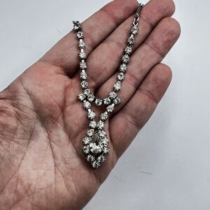 Vintage Rhinestone Choker Necklace Bridal Prom 14” laid flat, short, fit choker. Super Blaney and beautiful for any cut of dress or a shirt. Please see photo for item details and condition.