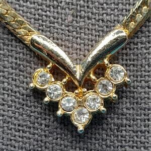 *Description: This is a lovely vintage necklace with a built in pendant in a v shaped design with a 16 Inch herringbone gold plated chain. The necklace is vintage from the 1990s. This would be a great addition to your jewelry collection or make a great gift!