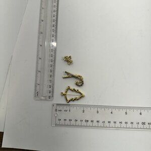 Minor tarnishing on gold-tone backing, rhinestones intact. Measurements: tree = 1.5 inches, candy cane = 1.25 inches, bow = 0.5 inch.