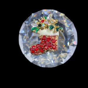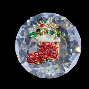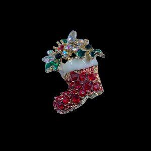 Vintage Rhinestone Christmas Stocking Brooch Holiday Jewelry Festive Glam