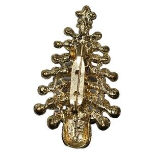 Beautifully designed with red, green, and clear rhinestones set in gold-tone metal, this piece captures the holiday spirit. The textured gold-tone base gives it a charming tree-trunk effect. Perfect for wearing on a coat, sweater, or scarf during the Christmas season, or as a thoughtful gift for collectors of holiday jewelry.