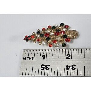 Material: Gold-tone metal, rhinestones (red, green, clear)