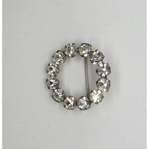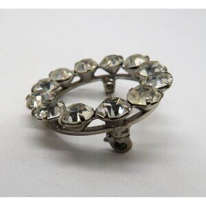 Vintage Rhinestone Circle Brooch 1 Inch Pin Silver Tone Clear Round Crystals