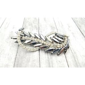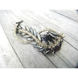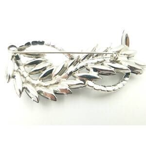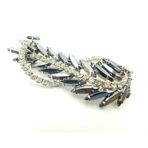 Described in the book as “Marquees entwine with chaton-cut clear rhinestones. From the 1940s to 1950s. Unsigned. Resembles a music clef.”