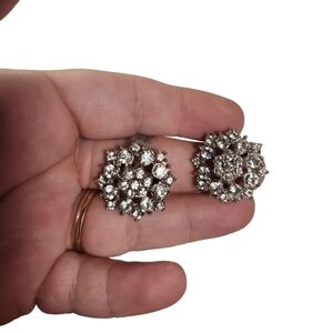 These are so sparkly! Vintage, diamond rhinestone clip on earrings in good condition with no missing stones and secure clips.