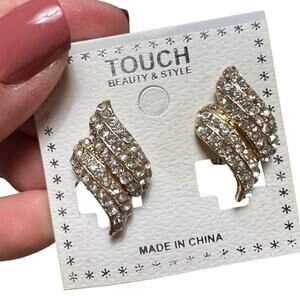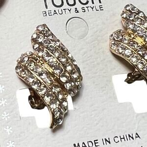 Vintage Rhinestone Clip On Earrings Gold Leaf Statement Costume Jewelry