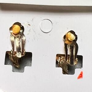 Girl, these vintage rhinestone beauties are about to become your new secret weapon! These golden leaf-shaped clip-on stunners are absolutely dripping with sparkle - literally hundreds of tiny rhinestones catching light from every angle. The intricate leaf design gives off major botanical vibes while that warm gold tone screams luxury without the price tag. Perfect for adding some serious glamour to your little black dress or elevating a casual blazer situation. These babies will have you feeling like old Hollywood royalty at your next dinner party or date night. The clip-on style means no pierced ears required - just clip and glow! Whether you're channeling vintage goddess energy or going for that effortless elevated look, these statement pieces will have everyone asking where you got them. The craftsmanship on these is insane - each rhinestone is perfectly placed to create maximum sparkle impact. Measuring approximately 1 x 0.75 inches, they're the perfect size for making a statement without overwhelming your face. Trust me, your jewelry box needs this level of drama.