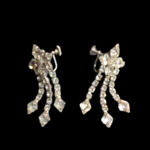 Vintage Rhinestone Clip-On Dangle Earrings Silver-Tone Sparkle Party Jewelry Ret