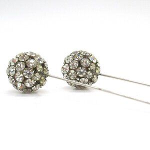 Vintage Rhinestone Cluster Ball Hat Pins Corsage Pins Silver-Tone Metal Set Of 2
