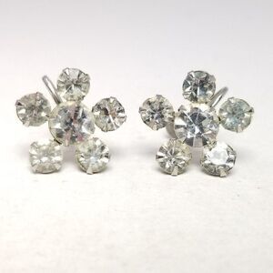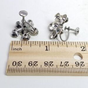 Vintage Rhinestone Cluster Clip On Earrings, Silver Tone Screw Back Setting