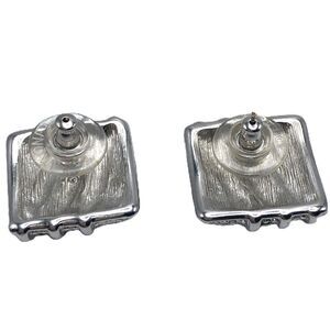 Vintage Rhinestone Costume Earrings Silver Monet Square Statement Fashion