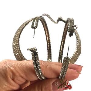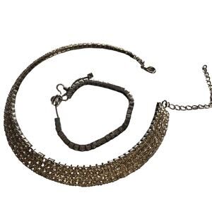 Vintage Rhinestone Crystal Silver Collar Bib Necklace, Hoop Earrings & bracelet