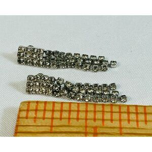 Vintage Rhinestone Dangle Earrings Pierced Silver Tone
