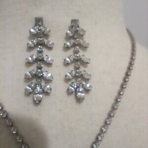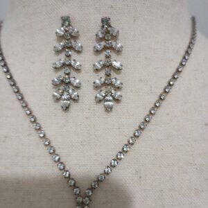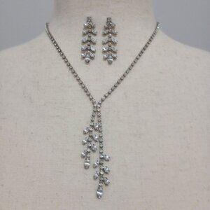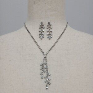Vintage Rhinestone Drip Necklace and Earrings Set