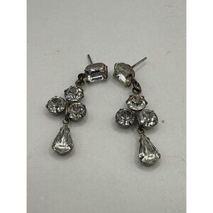 Vintage Rhinestone Drop Dangle Earrings Silver Tone Post Back