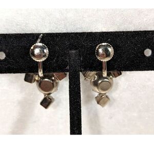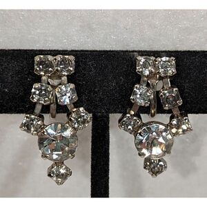 7 round rhinestones on drop earrings with screw back. Measurements are approximate: 1 inch length, screw backs.