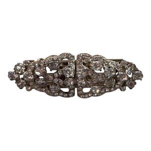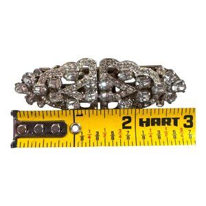 Enhance your attire with this versatile vintage rhinestone duette. Its Art Deco-inspired design offers timeless elegance, transforming outfits with a touch of refined sparkle.