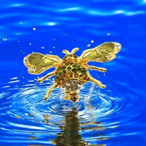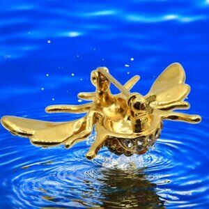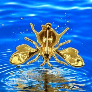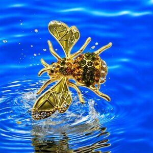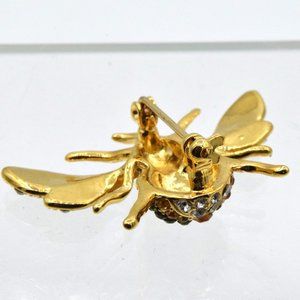 Vintage Rhinestone & Enamel Bee Brooch Fly Bug Insect Pin Gold Tone