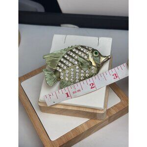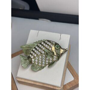 Vintage Rhinestone Fish Brooch Pin Gold Tone With Emerald Eye