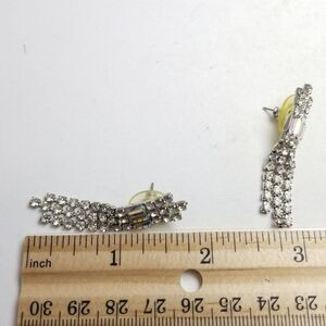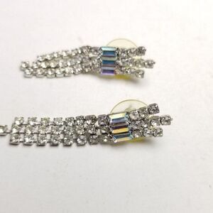 Vintage Rhinestone Fringe Dangle Stud Earrings, Retro Sparkle Fancy Formal