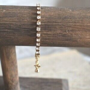 Pre loved vintage gold plated delicate tennis bracelet. Good condition, no missing stones plating in tact.