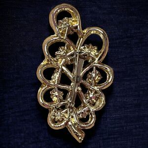 Very beautiful vintage rhinestone gold tone leaf brooch. No missing stones. Approximately 2.5” x 1.4”