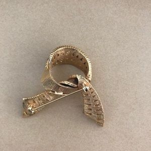 Vintage Rhinestone Goldtone Ribbon Brooch