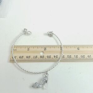 Vintage Rhinestone High Heel Shoe Charm Bracelet, Silver Tone Fashion Girl