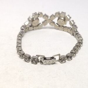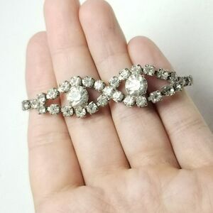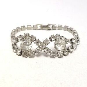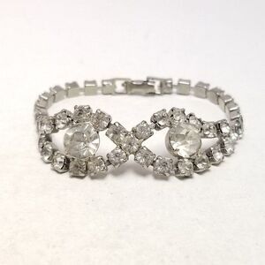 Vintage Rhinestone Infinity Design Figure 8 Silver Tone Bracelet, Retro 50s 60s