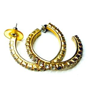 Missing stones. Medium size loops. Rhinestone. Gold metal.