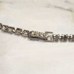 Vintage Rhinestone Necklace & 2 Pairs Of Clip-On Earrings Jewelry Set Silver-Ton