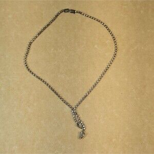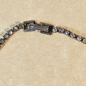 vintage Rhinestone necklace in silver Toned metal with clear stones. no makers mark. 15 to 16 inches