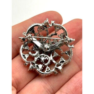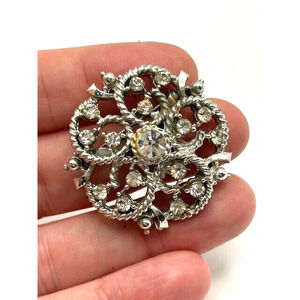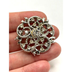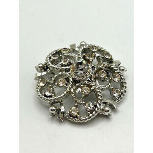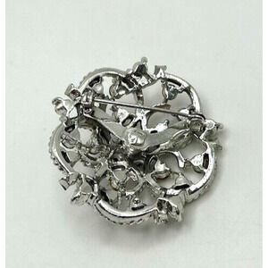 Vintage Rhinestone Palladium Flower Pin Brooch Silver Tone Round