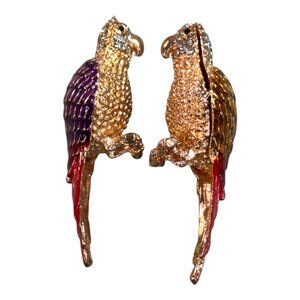 Vintage Rhinestone Parrot Bird Set Gold Tone Purple Red Enamel Wings Trinket Box