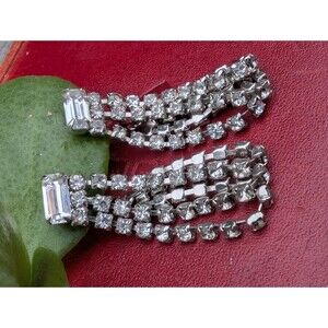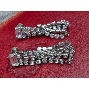 Screw On Vintage Rhinestone Earrings - Mid Century Chandelier Earrings - Wedding or Formal Wear Jewelry