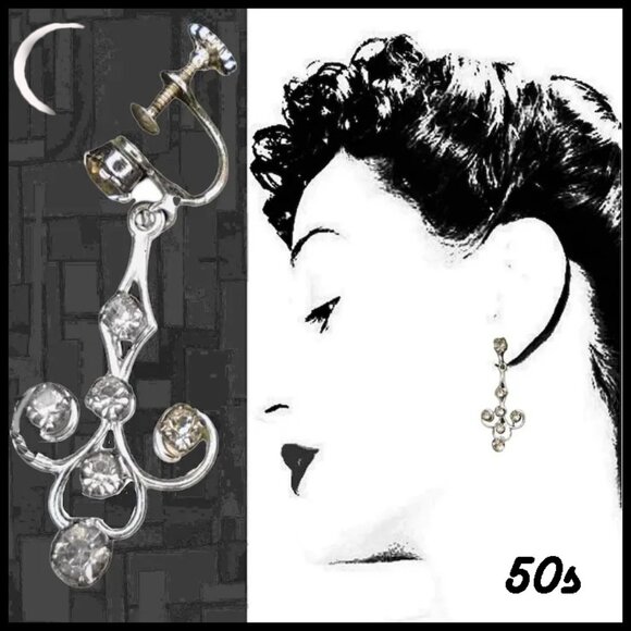Vintage Rhinestone Screwback Drop Earrings, 50s Dangles In Jewelry Gift Box
