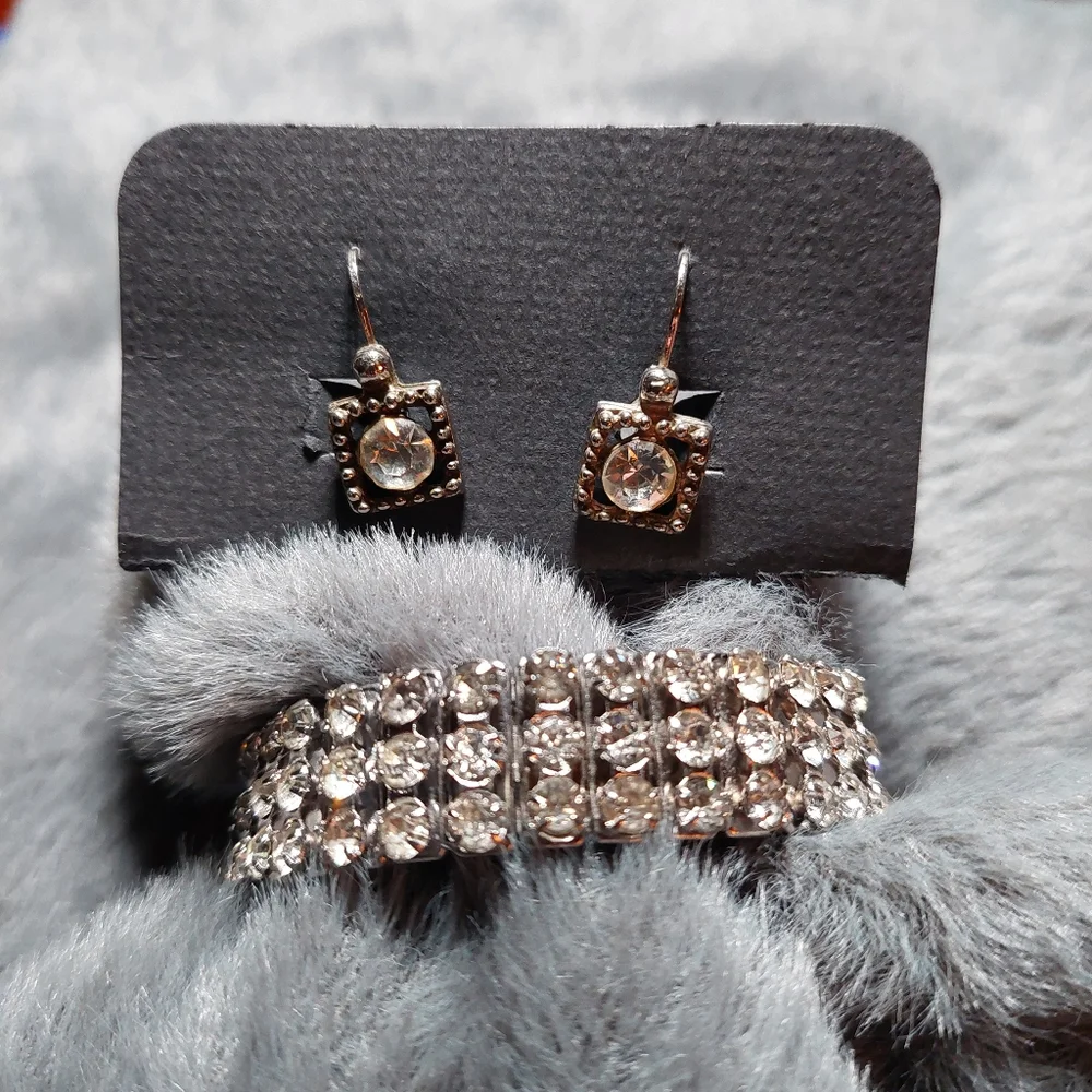 GORGEOUS!!! This set is in perfect condition. Bracelet is all prong set and stretchy to fit most wrists.