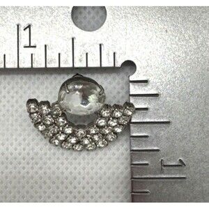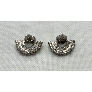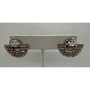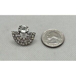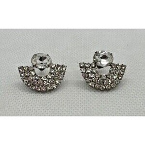 Vintage Rhinestone Silver Tone Semi Circle Stud Dangle Pierced Earrings Retro