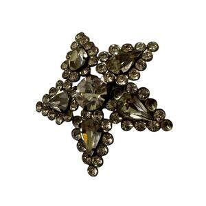 Vintage Rhinestone Star Brooch Clear Crystal Pin Mid Century Costume Jewelry