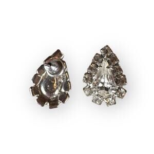 Vintage Clear Rhinestone Teardrop Stud Earrings With Faceted Pear-Shaped Centers And Sparkling Cluster Halo Design.