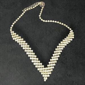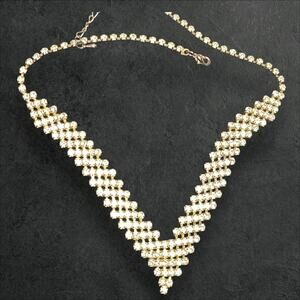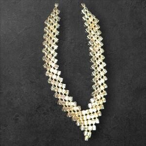 Vintage Rhinestone V Statement Necklace Gold Tone 16". Condition is Pre-owned - Good. Shipped with USPS Ground Advantage.
